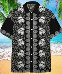 3d Star Wars Bandana Pattern White Pattern Black Background Hawaiian Shirt