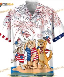 4th Of July Independence Day Cats Funny Hawaiian Shirt