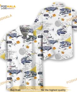 White Aloha Star Wars Spaceships Hawaiian Shirt, Gift For Beach Trip