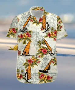 Windsurfing Yellow Tropical Flower Unisex Hawaiian Shirts