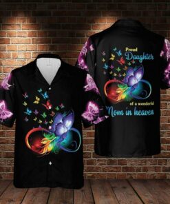 Butterfly Aloha Hawaiian Shirt – Proud Daughter Of A Wonderful Hawaiian Shirt, Mom In Heaven Hawaiian Shirt For Men & Women, Butterfly Lover