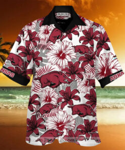 Arkansas Razorbacks White And Dark Red Flowers Hawaiian Shirt