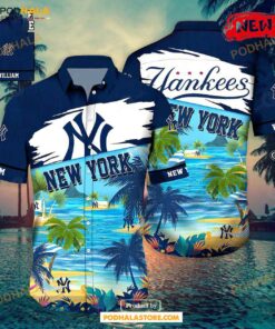 Personalized New York Yankee Coconut Tree Beach Sports Team Hawaiian Shirt