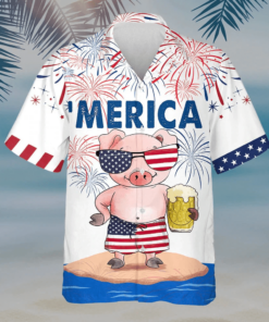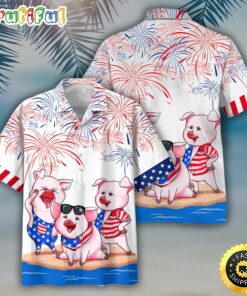 Pig 4th Of July Hawaiian Shirt Men’s Usa Patriotic Hawaiian Shirt Patriotic Aloha Shirts