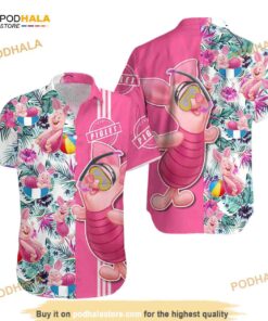 Piglet Pink Floral Hawaiian Shirt, Beach Pattern Disney Button Down Shirt