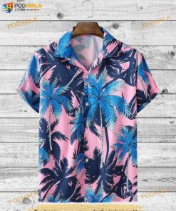 Pink And Blue Palm Tree Tropical Funny Hawaiian Shirt