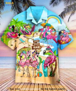 Pink Flamingo On Beach Summer Aloha Hawaiian Shirt, Vacation Family Gift