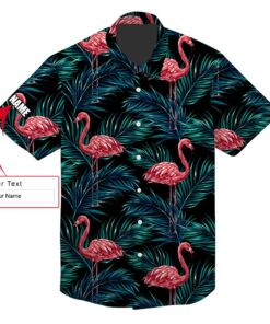 Pink Flamingo Tropical Custom Name Aloha Hawaiian Shirt For Summer, Palm Leaves Floral Pattern Personalized Hawaiian Shirts Outfit For Men Women