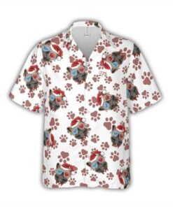 Pitbull Aloha Hawaiian Shirt – Pitbull Dog Santa Hat Hawaiian Shirt, Dog Footprint Hawaiian Shirt For Men & Women, Pitbull Lover