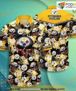 Pittsburgh Steelers Tropical Flower Pattern Hawaiian Shirt Beach Shirt Nfl