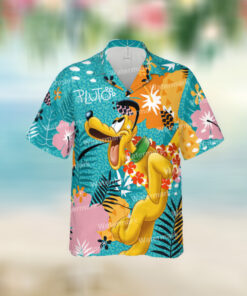 Pluto Mickey Mouse Floral Flowers Aloha Hawaii Shirt