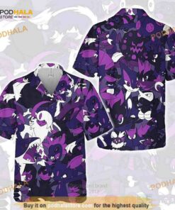 Pokemon Ghost Pokemons Glowing Light Black Pink Funny Hawaiian Shirt