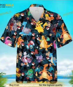 Pokemon Hawaiian Shirt, Pokemon Summer Button Up Shirt Summer Gift