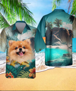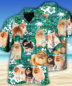 Pomeranian Aloha Hawaii Shirt – Green Tropical Dog Lover Hawaiian Shirt For Summer – Perfect Gift For Dog Lovers, Friend, Family