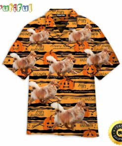 Pomeranian Dog On Walk To Halloween Dog Aloha Beach Summer Short Sleeve Hawaiian Shirt
