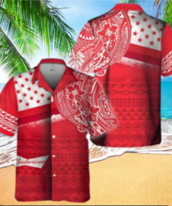Red Aloha Budweiser Beer Hawaiian Shirt Polynesian Pattern