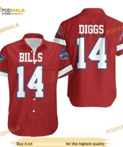 Red Aloha Diggs 14 Buffalo Bills Funny Hawaiian Shirt Gift For Football Fans