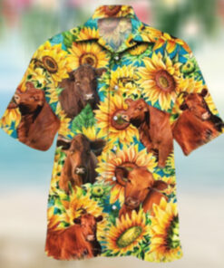 Red Angus Sunflower Hawaiian Shirt – Hot Sale 2024