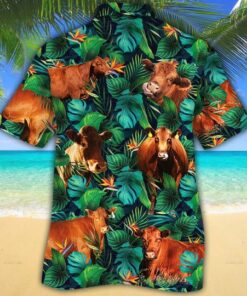 Red Angus Cattle Lovers Tropical Leaves Hawaiian Shirt – Hot Sale 2024
