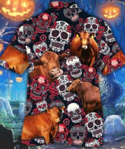 Red Angus Cattle Sugar Skull Floral Hawaiian Shirt – Hot Sale 2024