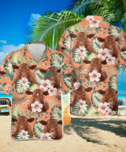 Red Angus Summer Happiness Floral Farm 3d Hawaiian Shirt
