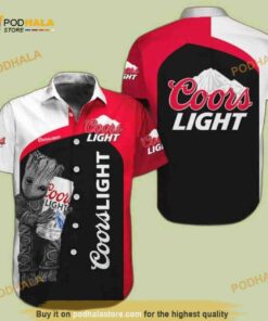 Red Black White Baby Groot Loves Coors Light Funny Hawaiian Shirt