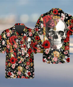 Red Flower Happy Summer Skull Hawaiian Shirt