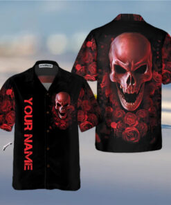 Red Rose Gothic Skull Custom Name Hawaiian Shirt For Men Women Adult