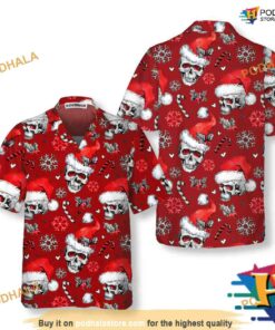 Red Skulls Candy Canes Aloha Xmas Santa Hawaiian Shirt