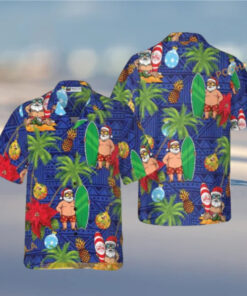 Santa Surfing Summer Hawaiian Shirt, Funny Christmas In July Gift