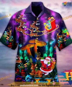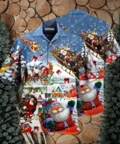Santa’s Sleigh & Reindeer Hawaiian Shirt, Christmas Apparel