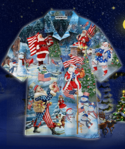 Santa Claus With American Flag On Christmas Day Aloha Hawaiian Shirts For Men Women, 4th Of July Gift For Summer, Friend, Family, Independence Day