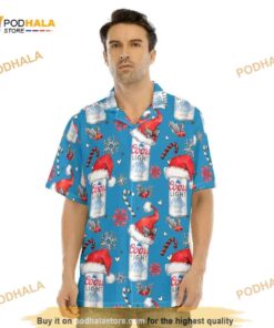 Santa Hats Coors Light Funny Hawaiian Shirt Christmas Candy Gift For Beer Lovers
