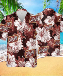 Schlitz Beer Tropical Flower Pattern Hawaiian Shirt