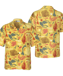 Scuba Diver And Sea Pattern Yellow Hawaiian Shirt, Colorful Summer Aloha Shirt For Men Women, Gift For Friend, Team, Diving Lovers