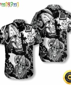 Seamless Pattern Skull In Viking Helmets Happy Fathers Day Hawaiian Shirt