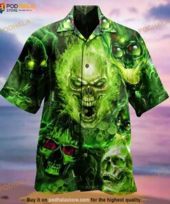 Skull Green Print Hawaiian Shirt, Tropical Shirt