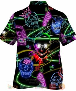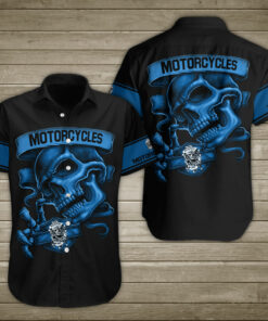Skull Motorcycle Light Blue Neon Hawaiian Shirt Summer Button Up – Hot Sale 2024