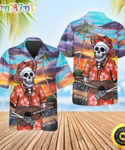 Skull Play Guitar By The Beach Aloha Beach Skulls Summer Hawaiian Shirt
