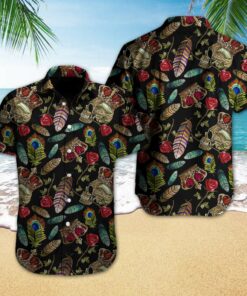 Skull Rose Feather Hawaiian Shirt Summer Button Up – Hot Sale 2024