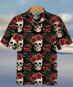 Skull Rose Vintage Hawaiian Shirt Red Roses Gothic Skull Shirt