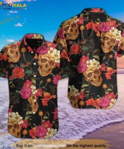 Skull Flower Hawaiian Shirt Summer Button Up – Hot Sale 2024