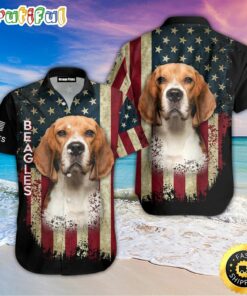 Beagle Dog American Flag Aloha Beach Summer Short Sleeve Hawaiian Shirts Men