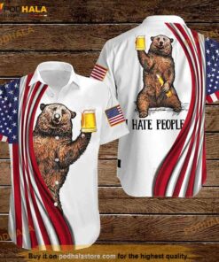 Bear And Beer American Flag 4th Of July Independence Day I Hate People Hawaiian Shirt