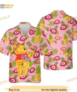 Bear The Pooh Flower Colorful Pineapple On The Pink Funny Hawaiian Shirt