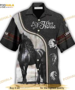 Beautiful Black Horse Hawaiian Shirt, I Love Horse Aloha Shirts, Horse Racing Lovers