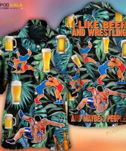 Beer And Wrestling Tropical Pattern 3d Funny Hawaiian Shirt