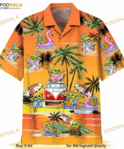 Star Wars Disney Baby Yoda Orange Hawaiian Shirt