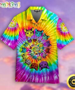 Tie Dye Hippie Summer Funny Cat Cute Aloha Hawaiian Shirts