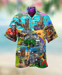 Tiki And Skull Blue Sea Funny Design For Tiki Lovers Aloha Hawaii Shirt